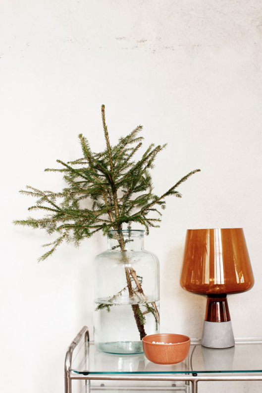 Con delle semplici bottiglie e rametti di agrifoglio si decorano mensole e ripiani:
