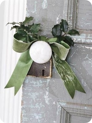 Allo stipite delle porte o sulle maniglie  possono essere appese delle decorazioni semplici create con palline, rami di pino, nastri e quanto la fantasia suggerisce: