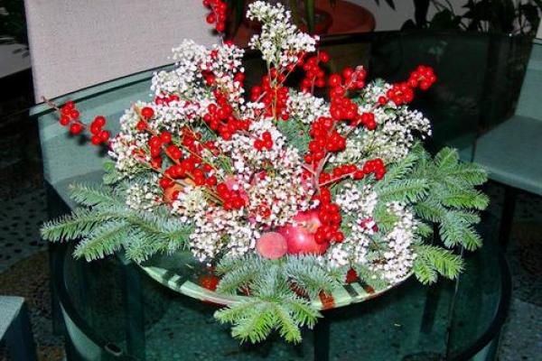 Poi abbiamo il centrotavola minimalista di Madamadorè siffatto: "In un cestino mettete mandarini, noci e pistacchi. Un paio di fette di arancia essiccate e concludete con qualche ramo di liquidambra"