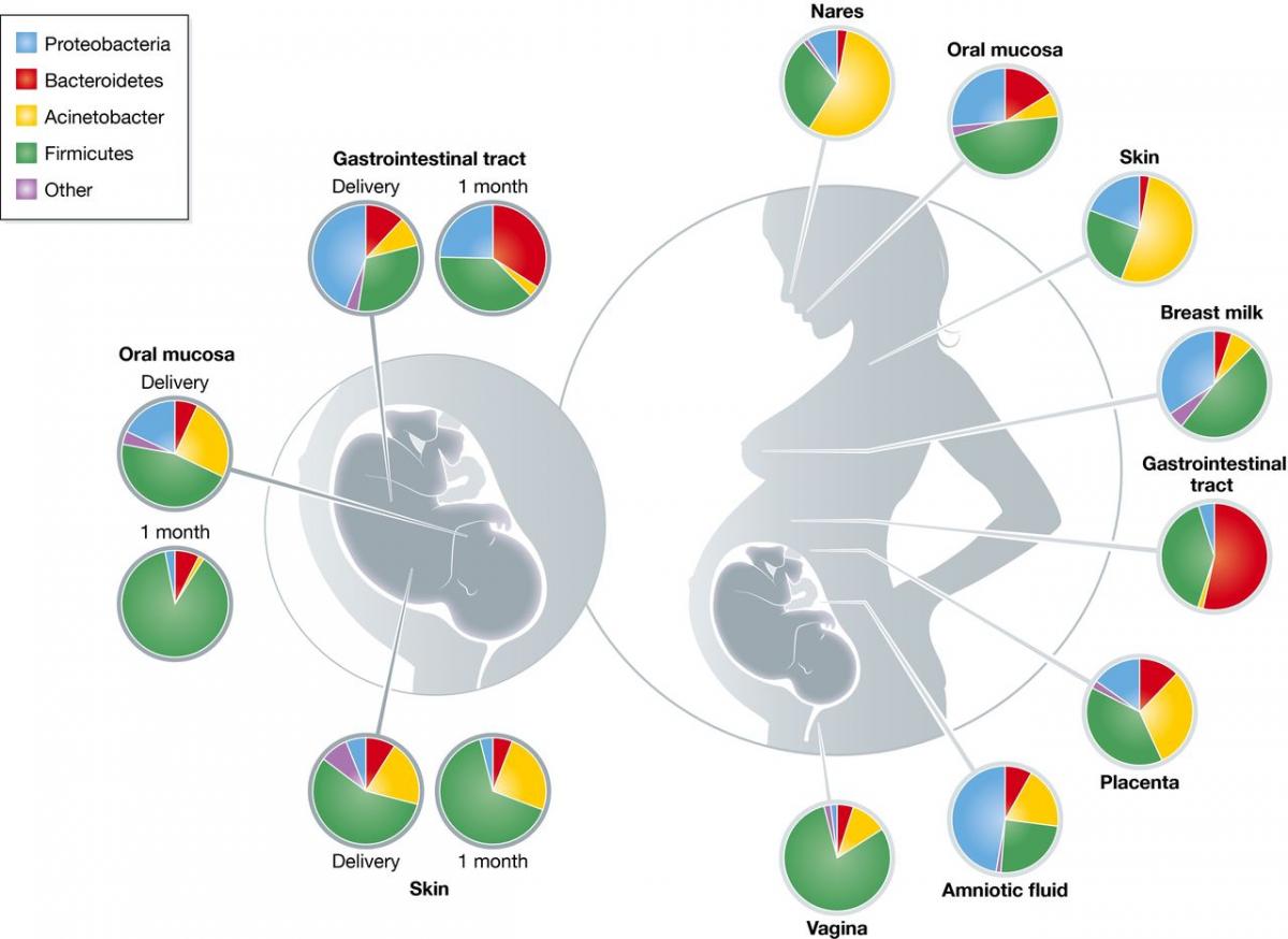 Vari studi sul Microbiota di neonati hanno precedentemente dimostrato che, il modo in cui un bambino viene al mondo, con parto vaginale o tramite taglio cesareo, possa alterare o meno le comunità batteriche del loro microbiota, a volte anche con conseguenze a lungo termine.