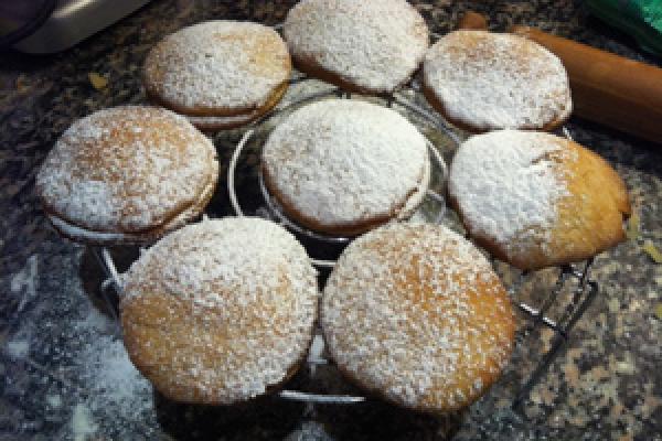 Lillafiore: ha usato la farina di mandorle al posto della farina di grano (e i biscotti nelle foto sono suoi, slurp!) e uniti due a due con marmellata di lamponi e nutella.