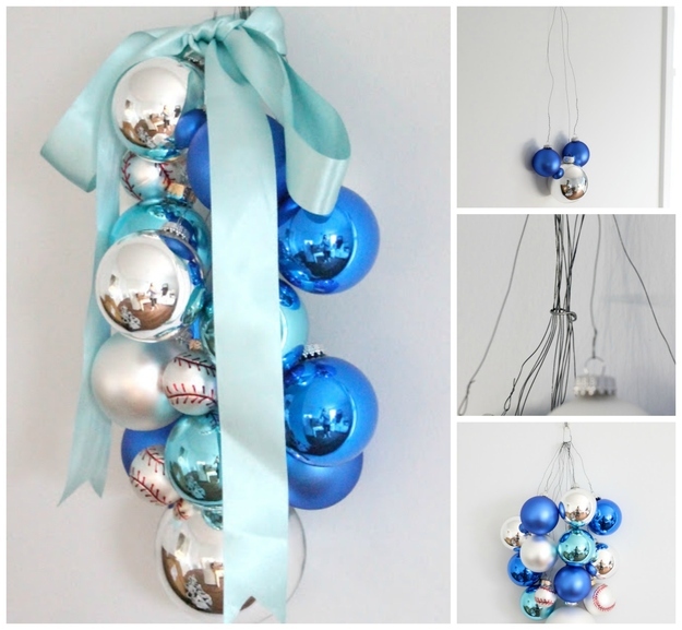 Allo stipite delle porte o sulle maniglie possono essere appese delle decorazioni semplici create con palline, rami di pino, nastri e quanto la fantasia suggerisce: